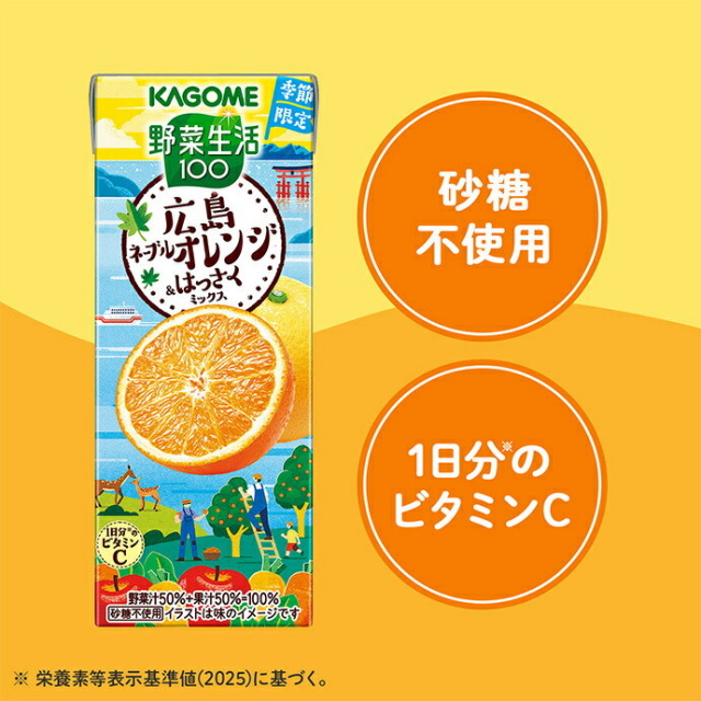 カゴメ 野菜生活100 広島ネーブルオレンジ&はっさくミックス 195ml紙パック×24本入