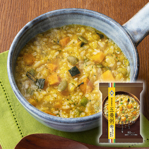【黒】精白米(国産)、チンゲン菜、黒米(国産)、チキンエキス、しょうゆ(小麦・大豆を含む)、おろししょうが、クコの実、でん粉、食塩、ごま油、ほたてエキス、酵母エキス、たん白加水分解物(豚肉を含む)、乾椎茸、ごま、高麗人参、オイスターソース(魚醤(魚介類)を含む)/トレハロース、酸化防止剤(V.E)【白】精白米(国産)、白菜、鶏卵、ビーフエキスパウダー、はと麦、丸麦、しょうが、でん粉、松の実、たん白加水分解物(小麦・豚肉を含む)、食塩、おろししょうが、酵母エキス、キクラゲ、乾燥ねぎ、ガーリックパウダー(乳成分を含む)、オニオンパウダー/酸化防止剤(V.E)【赤】精白米(国産)、ソテーオニオン、グリルトマト、トマトペースト、玉ねぎ、オリーブ、赤米(国産)、マッシュルーム水煮、チキンエキス、食塩、野菜エキス、でん粉、たん白加水分解物(小麦を含む)、酵母エキス、香辛料(乳成分を含む)/酸味料、酸化防止剤(V.E)【黄】精白米(国産)、かぼちゃペースト、かぼちゃ、ピーマン、かぼちゃの種、もちきび、食塩、でん粉、鰹節エキスパウダー、酵母エキス、たん白加水分解物(豚肉を含む)、パセリ/酸化防止剤(V.E)【緑】精白米(国産)、豆乳(大豆を含む)、ほうれん草、赤ピーマン、紅鮭、緑米(国産)、緑豆、ほうれん草ペースト、チキンエキス、食塩、でん粉、野菜ペースト、たん白加水分解物(小麦を含む)、酵母エキス、ガーリックパウダー、胡椒、筋骨草エキスパウダー/トレハロース、酸化防止剤(V.E) |